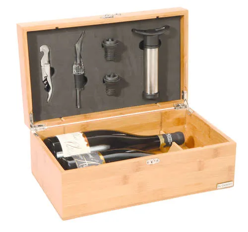 Ce coffret sommelier en bambou peut accueillir deux bouteilles. En plus d’être complet, il est pratique solide et respectueux de l’environnement.